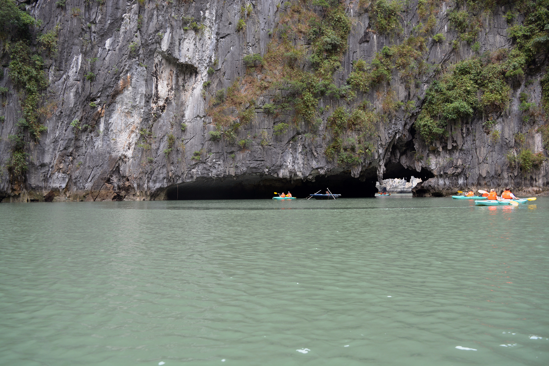 To visit the bay, I booked a 6 hours boat tour, which includes visits to Sung Sot Cave, a floating market, some kayaking, a delicious non-vegetarian dinner and a visit to some other thing I forgot about. I forgot about it not because it wasn’t interesting, but maybe because of all that non-vegetarian dinner I did not ate.